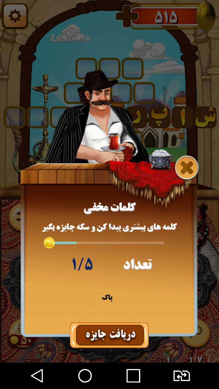 در این بازی با بهره گیری از فرهنگ تهران قدیم و معرفی مشاغل ,کاربر را در فضایی شاد و مفرح به چالش ساخت کلمات معنادار دعوت می کند ، رده سنی این بازی 3 تا 70 سال را در بر می گیرد.